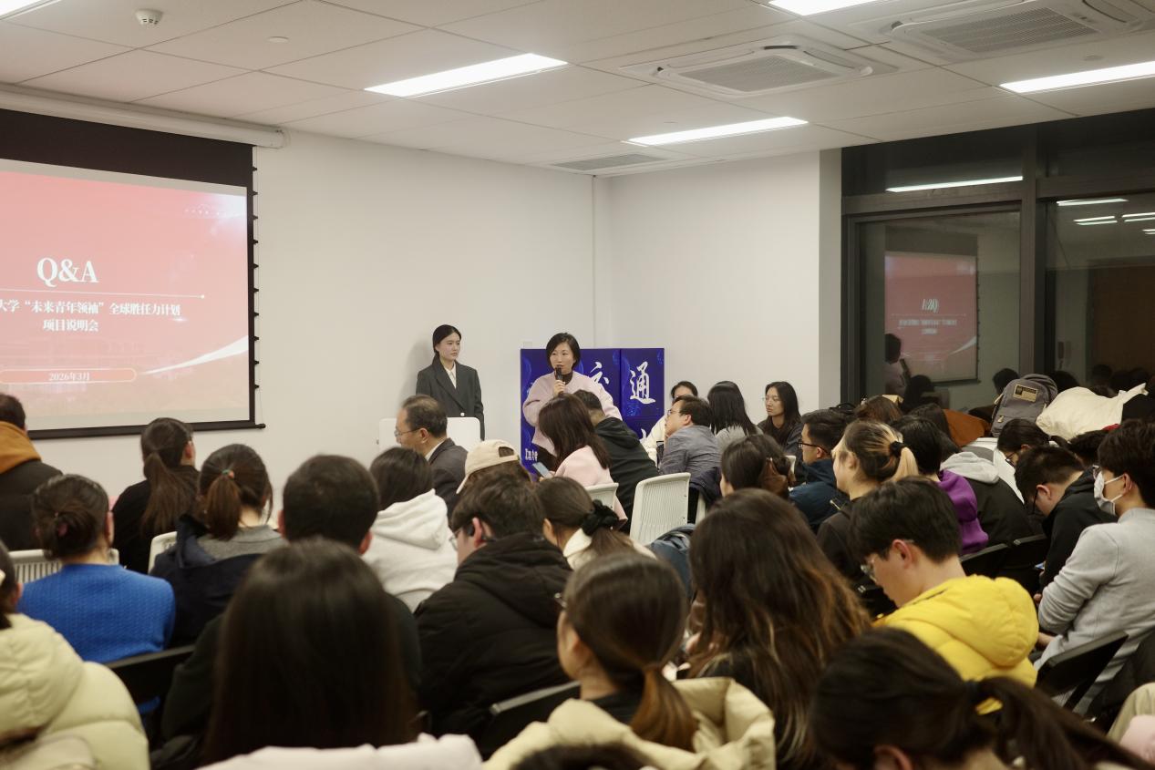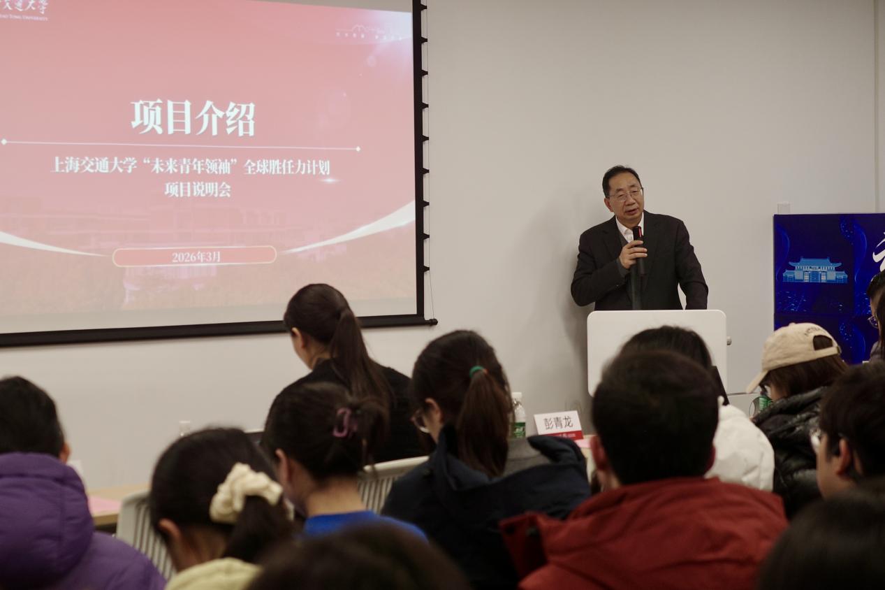 On March 2, the program briefing session for Shanghai Jiao Tong University's “Future Youth Leaders” Global Competence Program was successfully held in Room B306 of the Student Center on Minhang Campus.Peng Qinglong, Director of the Academy of International and Regional Studies and Distinguished Professor of the School of Foreign Languages; Zhu Yifan, Party Secretary and Tenured Professor of the School of Foreign Languages; Cheng Lingzhi, Distinguished Researcher of the Academy of International and Regional Studies; Zhang Yifan, Deputy Party Secretary of the School of Foreign Languages; Zhen Fengchao, Vice Dean and Professor of the School of Foreign Languages; Professor Wu Shiyu; Tenured Associate Professor Zou Li; Tenured Assistant Professor Zhao Siqi; and Liu Yijun, Supervisor of the International Student Development Center of the International Affairs Division, attended the session. More than 100 students from across the university participated in the event, with warm and active interactions throughout. The session was hosted by Mao Luxuan, a 2023 undergraduate student from the Department of German Studies, School of Foreign Languages.