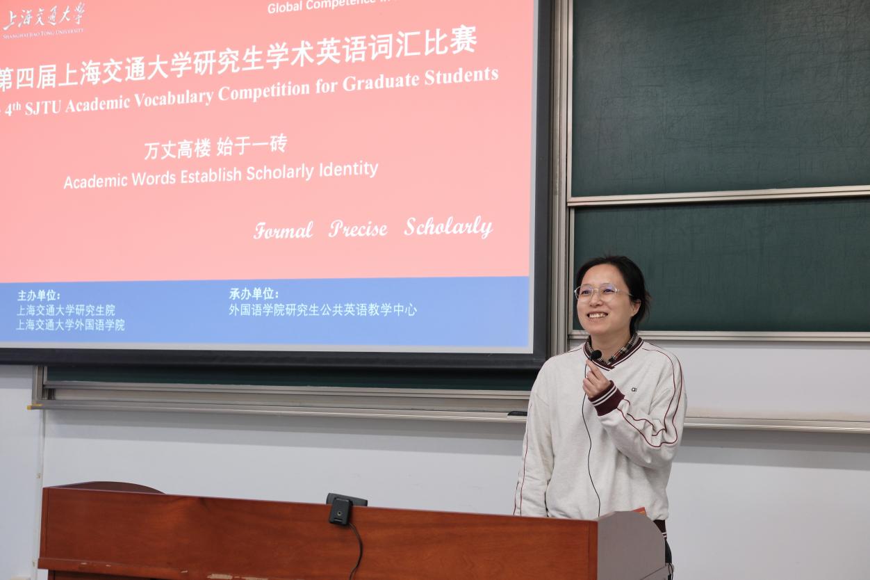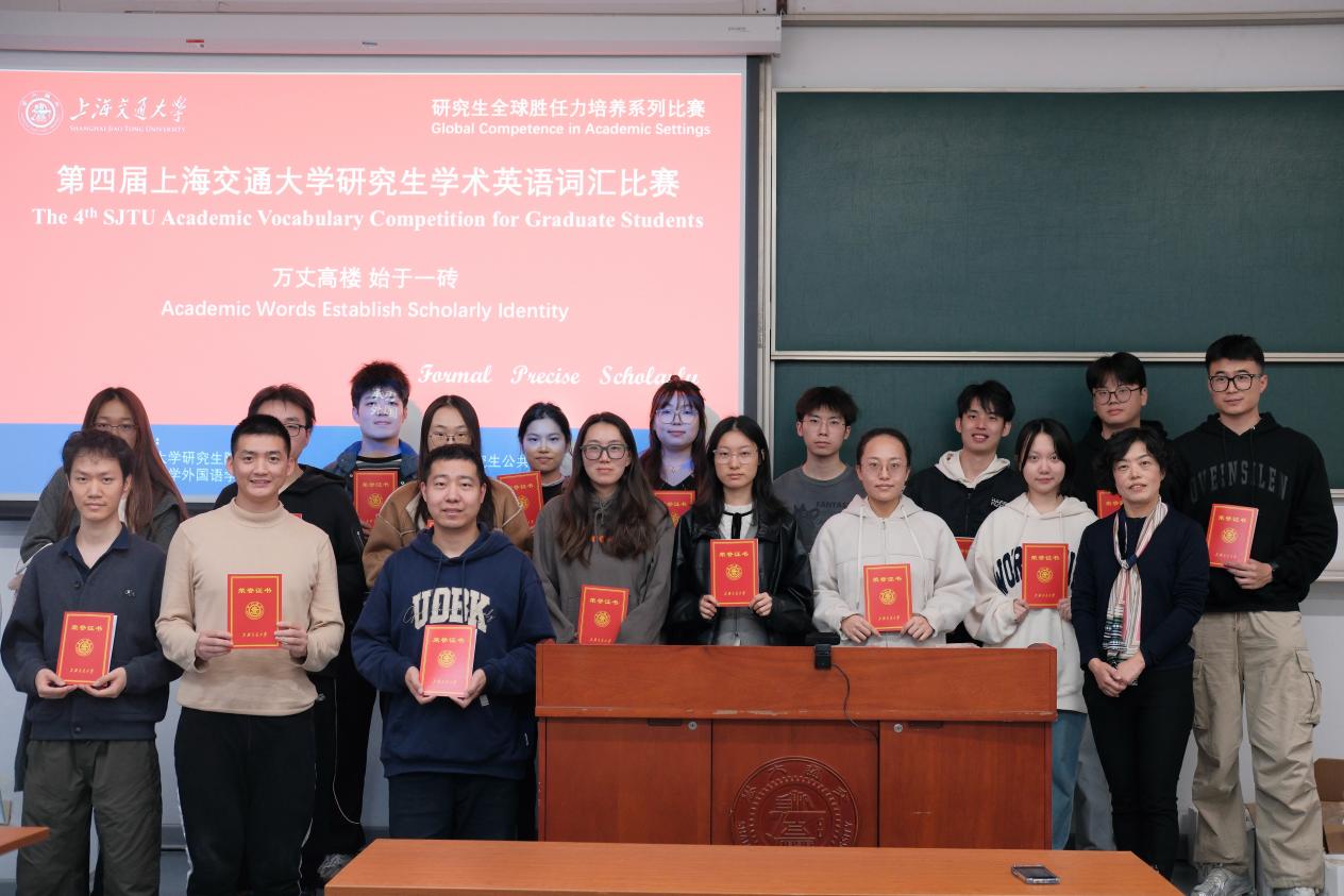 据悉,两周后还将举办第七届博士生学术英语演讲比赛。这一系列课外活动与赛事,是我校研究生学术英语课程体系的有机延伸,聚焦于研究生全球胜任力培养,旨在进一步提高我校非英语专业硕博研究生使用英语进行科研创新、学术交流和国际学术对话的能力及水平,助力在国际学术舞台讲好中国学术故事。
