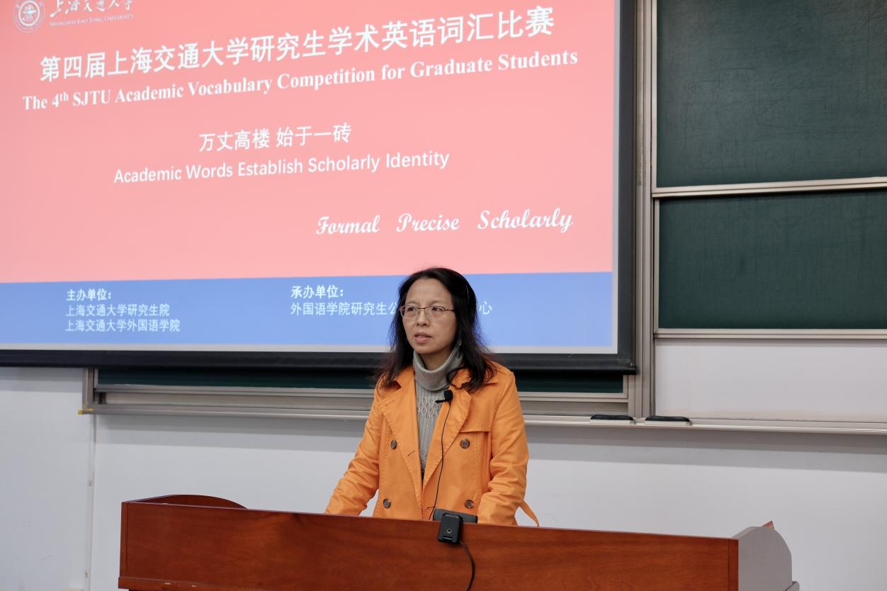 可尘娟发表开幕致辞。她代表研究生院对赛事组教师和所有参赛选手致以热情的欢迎和衷心的感谢。英语作为国际学术交流通用语言,是研究生走向世界的一个关键工具。学校始终致力于培养具有国际视野的优秀顶尖研究生人才,并持续推进相关工作,包括系列课程的开设以及大师讲坛的设立等。词汇竞赛为同学们提供了学术交流的平台和自我展示的机会,她希望参赛选手们以赛促学、以赛会友、以赛促思。
