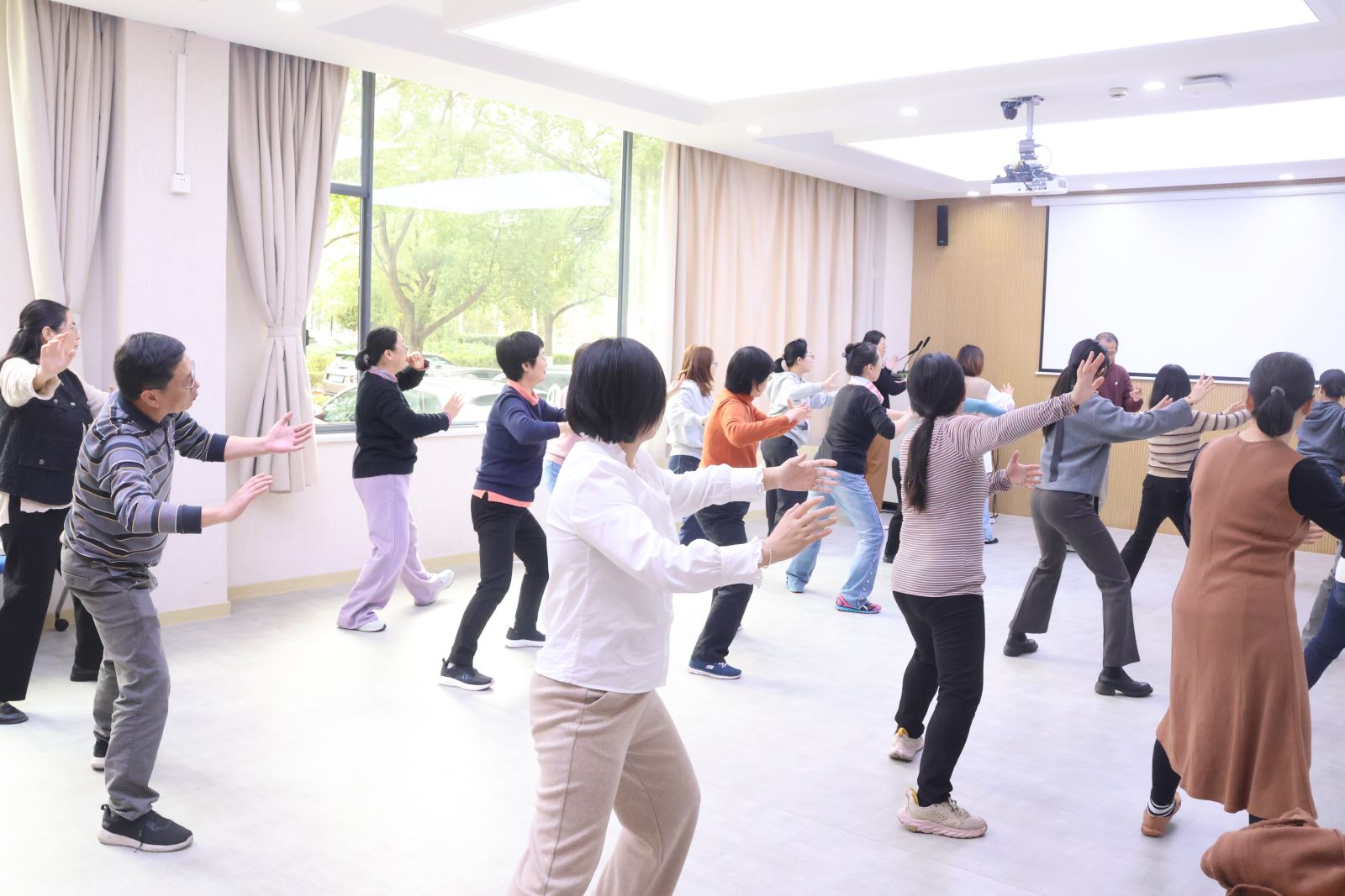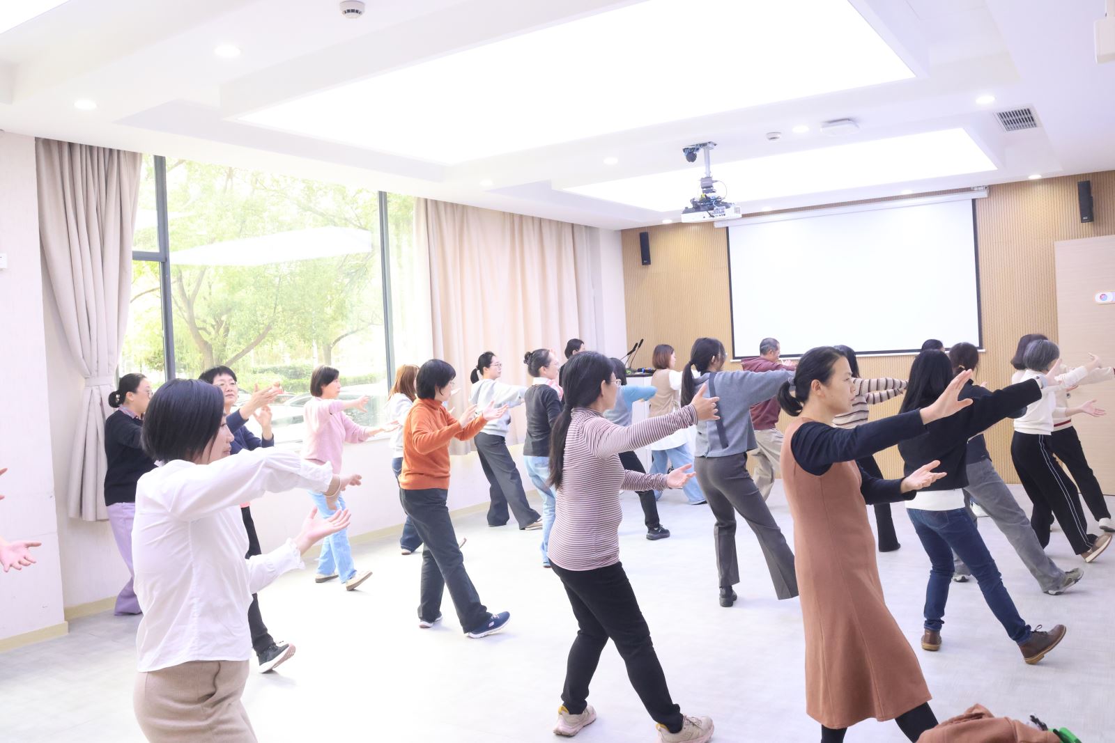 太极拳作为中华传统文化的瑰宝,融合了中医养生理念与武术健身精髓,动作柔和舒缓、动静结合,不仅能有效缓解工作压力、增强身体素质,更能在练习过程中培养专注力与平和心态,非常适合教职工日常锻炼。参与活动的老师们纷纷表示,此次培训既学到了实用的健身技巧,又收获了轻松的交流时光。