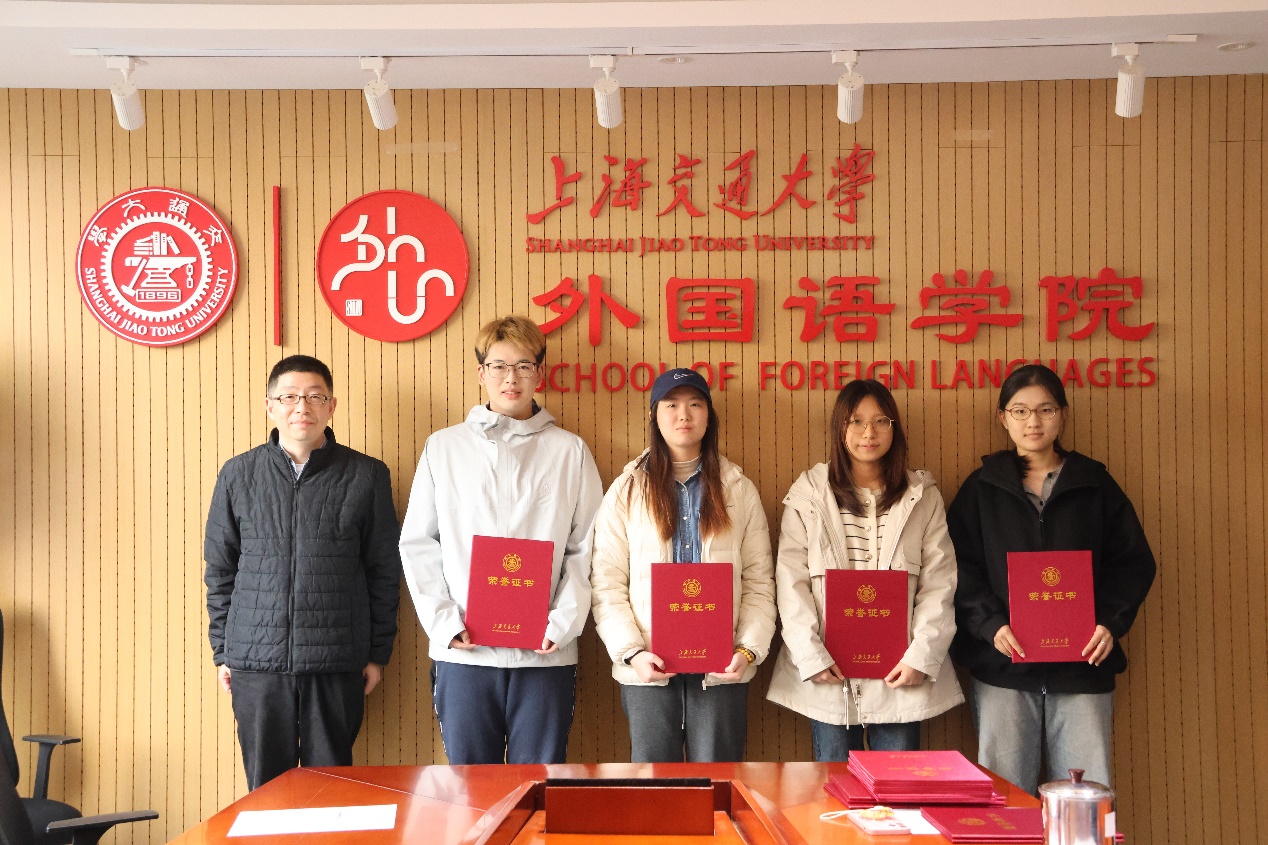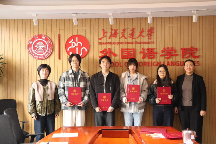 尚必武向全体获奖同学致以热烈祝贺,并围绕人工智能时代外语学科的发展前景指出,交大外语人才培养正加速转型——从单一语言技能训练,转向“语言+区域国别+专业领域”的复合型模式。尤其在当前国际形势复杂敏感的背景下,日语专业学生更应深化对日本政治、经济、文化及历史的理解,成为国家亟需的高端涉外人才。院长强调,学校专门设立面向日语系学生的奖学金,体现了对外语学院特别是日语系的高度重视与殷切期待。他勉励同学们珍惜荣誉、坚定信心,勇担“选择了交大就选择了责任”的使命,在服务国家战略和推动中外交流中实现更大价值。
