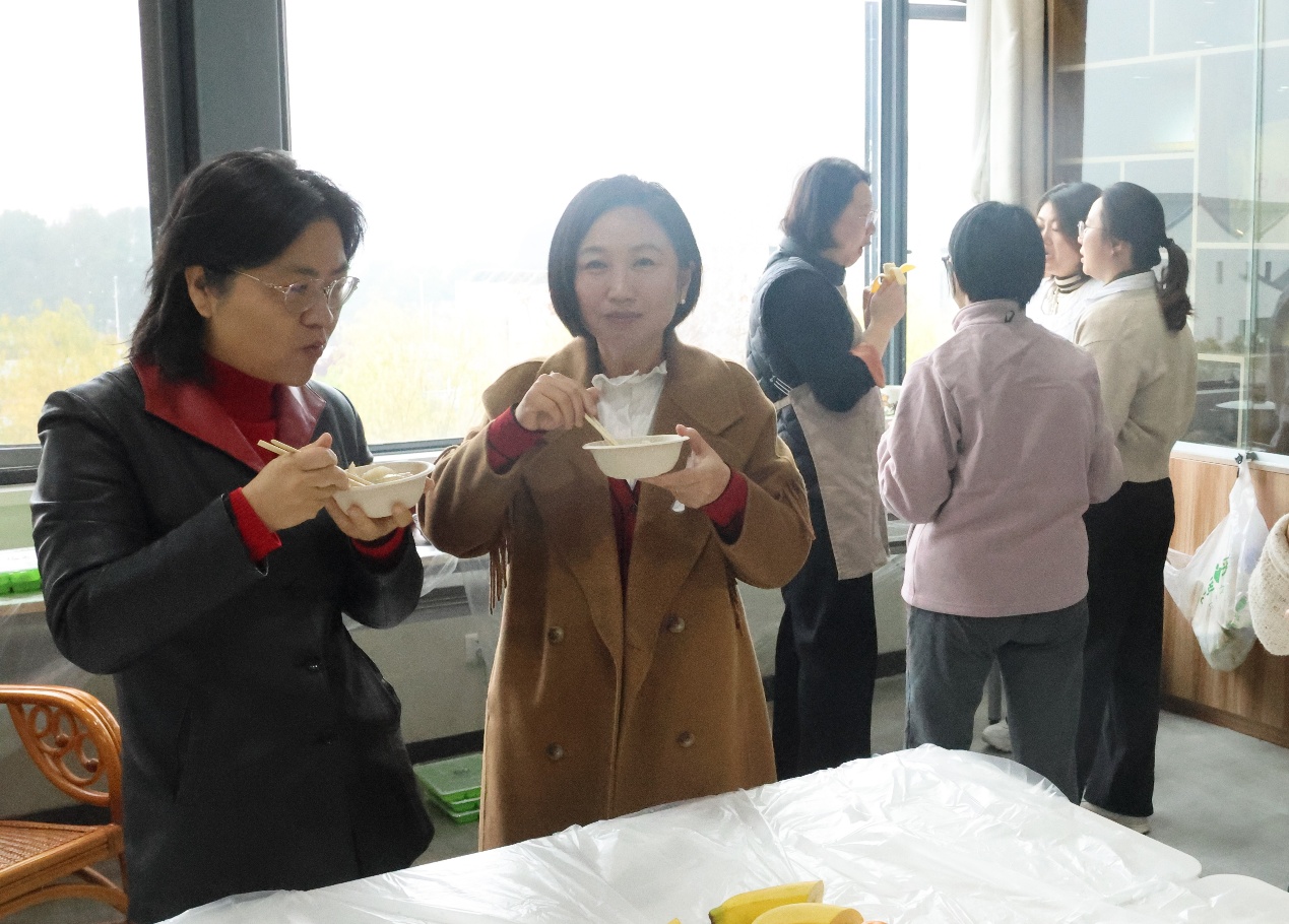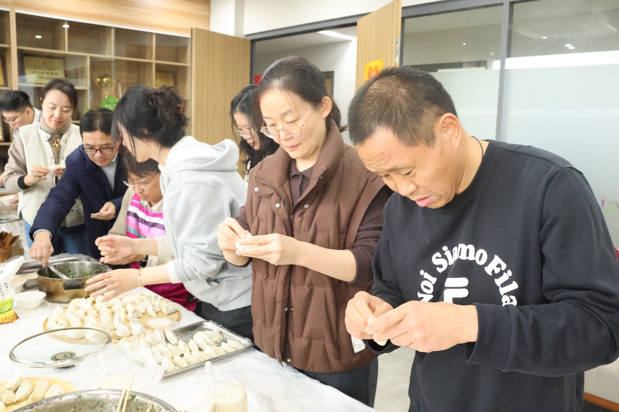 教职工围坐在一起品尝亲手包的饺子,在分享趣事、交流感悟中,深切感受学院大家庭的温暖,现场氛围融洽。