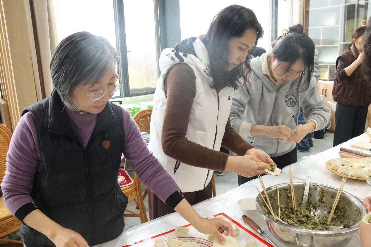 工会提前完成食材、工具筹备,现场整洁有序。活动中,教职工自发分组协作,擀皮、包馅各司其职,老手娴熟示范,新手虚心求教,欢声笑语间尽显情谊。